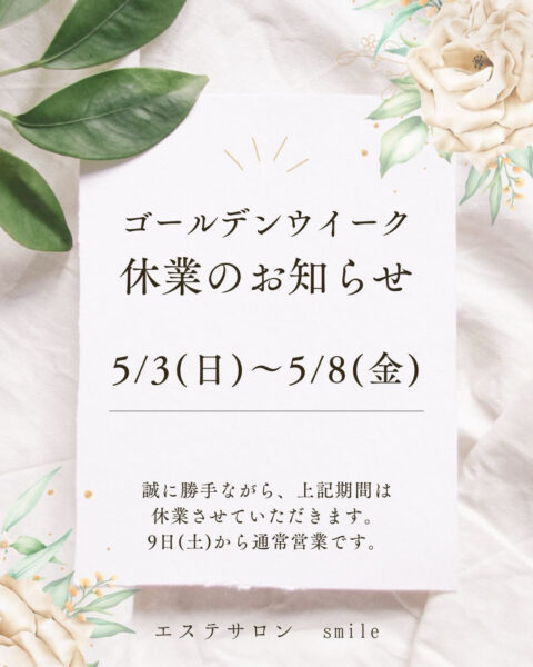 ゴールデンウイークの休業日のお知らせです。